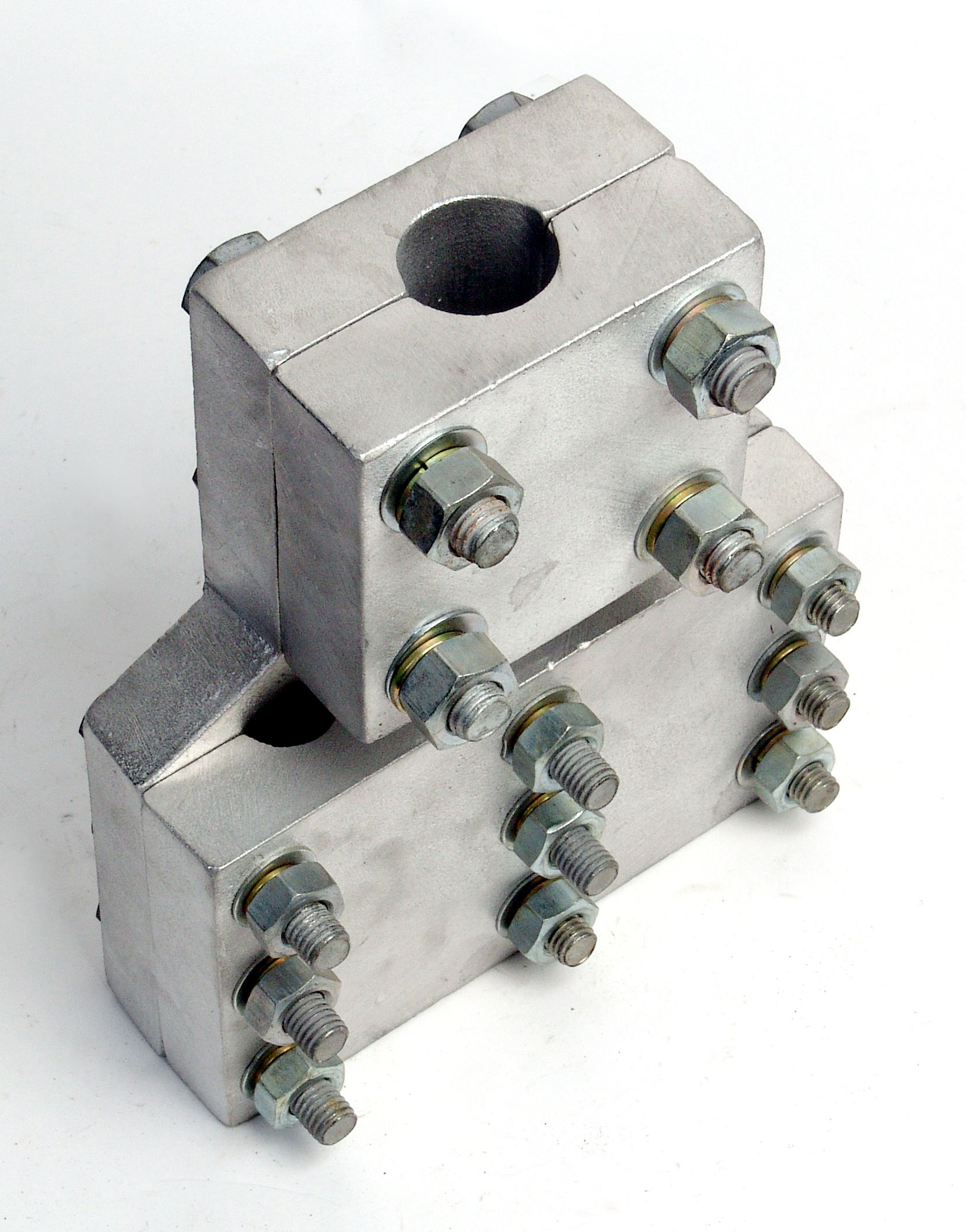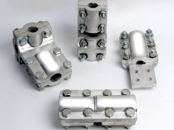 We manufacture terminal connectors made of aluminium, brass, and copper. We also make bimetallic connectors which have components of aluminium and brass and/or copper, and are used where 2 different metals have to be connected as in the case of connecting ACSR conductors to transformers having copper primary terminals. The use of bimetallic connectors prevents bimetallic corrosion.